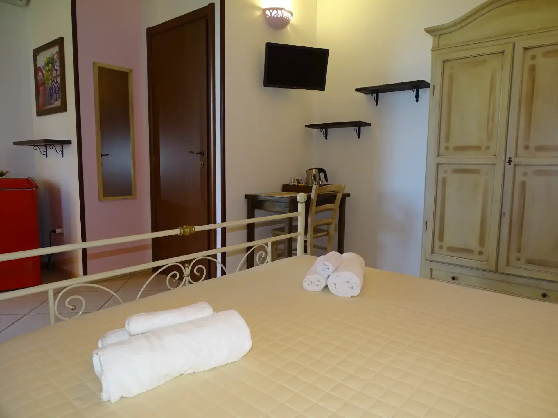 Ogni camera dispone di un ampio terrazzo privato, attrezzato con tavolino e sedie, perfetto per rilassarsi ammirando il panorama o gustare una ricca colazione all’aria aperta. È inoltre presente uno stendino per ogni esigenza quotidiana.